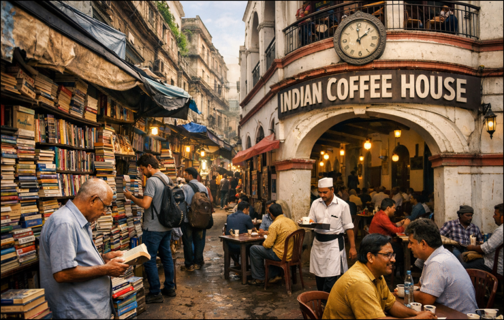 College Street’s soul resides in the iconic Indian Coffee House, a historic sanctuary for “Adda” (intellectual discourse). Originally opened as Albert Hall in 1876, it became a legendary hub where giants like Satyajit Ray, Amartya Sen, and Manna Dey spent hours debating art, revolution, and philosophy over cups of infusion.