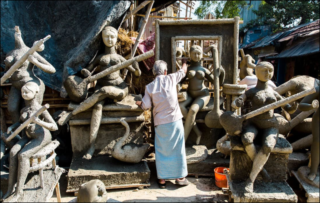 Kumartuli, traditionally spelt “Kumortuli” (meaning “Potter’s Quarter”), is a historic settlement in North Kolkata with origins dating back to the mid-18th century. Following the British victory at the Battle of Plassey in 1757, the decision was made to construct a new Fort William in the village of Gobindapur. This massive project displaced the local population, forcing the community of potters (Kumars) to migrate northwards to the Sutanuti area along the banks of the Hooghly River.